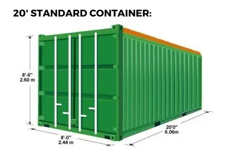shipping container measures 8 feet in length, 8 feet in width, and about 8 feet tall